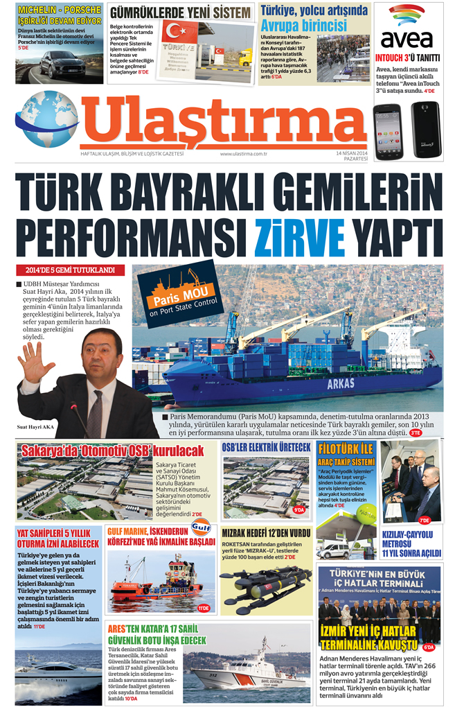 Türk bayraklı gemilerin PARIS MOU denetimlerindeki başarısı ve Ulaştırma Denizcilik ve Haberleşme Bakanlığı Müsteşar Yardımcısı Suat Hayri Aka'nın bu konudaki açıklamaları Ulaştırma Gazetesi'nin bu sayısında yer aldı.