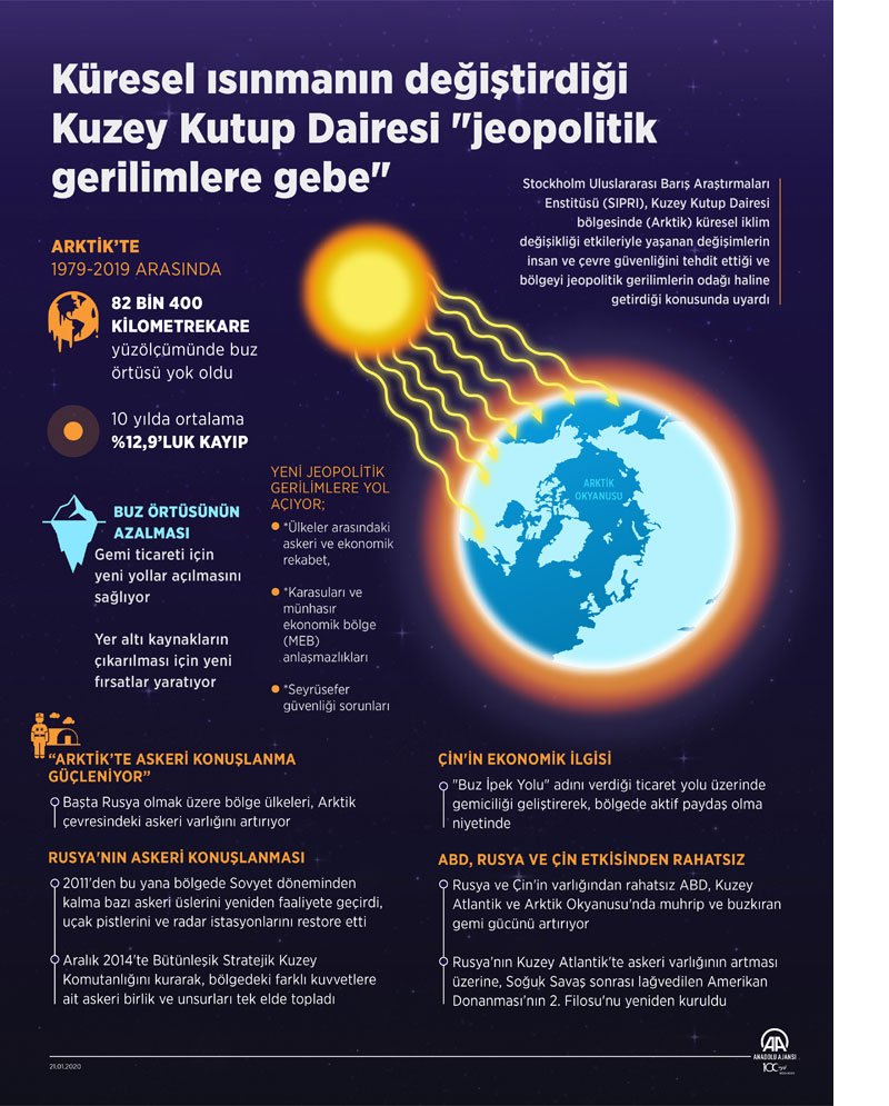 Öte yandan raporda, Çin'in de yükselen küresel güç olarak bölgeye yönelik ilgisinin arttığı ifade edildi. Çin Dışişleri Bakanlığının 2018 başında yayımladığı siyaset belgesinde, bölgede madencilik ve akaryakıt üretimi, bilimsel araştırma ve diplomasi alanındaki hedeflerini sıraladığı anımsatılan raporda, ülkenin "Buz İpek Yolu" adını verdiği ticaret yolu üzerinde gemiciliği geliştirerek bölgede aktif paydaş olma niyeti ortaya koyduğu belirtildi.