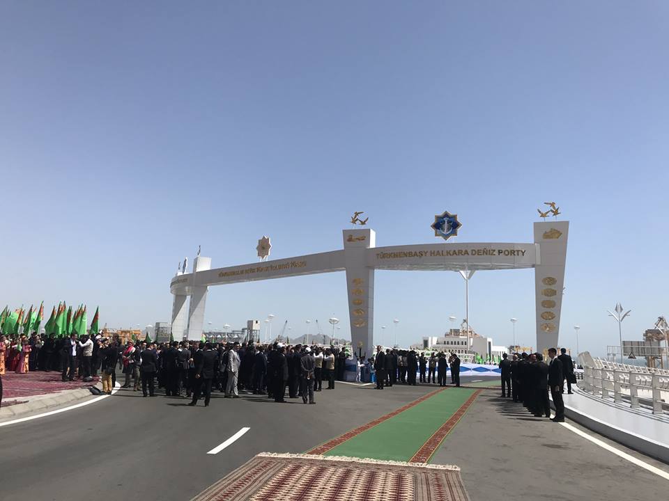 Türkmenistan Devlet Başkanı Gurbangulu Berdimuhamedov'un kalkınma vizyonu projelerinden olan Uluslararası Türkmenbaşı Limanı hizmete açıldı.