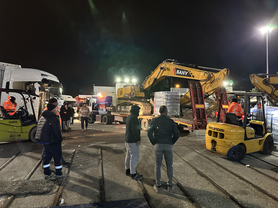 İzmir'den deprem bölgesine yapılan destek ve yardımlar kapsamda çeşitli kurumlarca organize edilen iş makineleri, inşaat malzemeleri, yakıt tankerleri, konteyner, gıda ve sağlık malzemelerini taşıyan araçlar Çeşme Ulusoy Limanı'na getirildi.