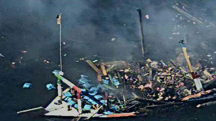 Uyuşturucu taşıdığı düşünülen gemiden önce dumanlar yükseldi, daha sonra korkunç bir patlamayla sarsıldı.