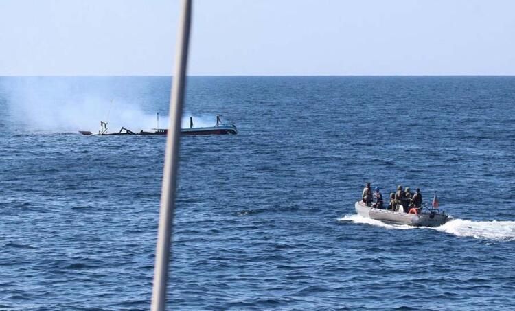ABD Donanması Perşembe günü yaptığı açıklamada, Umman kıyılarında yelkenli gemilerinde bulunan zulalarını ateşe verdikten sonra, uyuşturucu kaçakçılığından şüphelenilen beş İranlıyı kurtardığını açıkladı.
