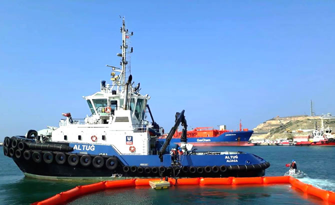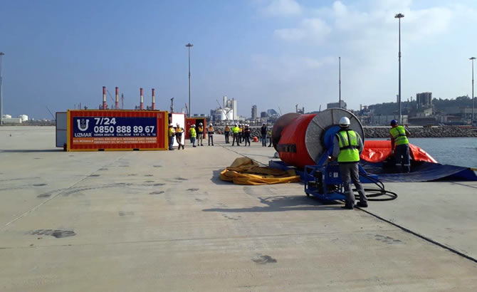 Geçen hafta Nemrut Koyu'nda faaliyet gösteren APM Terminali ile birlikte deniz kirliliği acil müdahale tatbikatı düzenleyen UZMAR, bu hafta içerisinde yine Nemrut Koyu'nda bulunan Egeçelik, Batıçelik, Batıliman, İDÇ, Nemport, Petkim, Milangaz, terminalleri olmak üzere 6 kıyı tesisinin iştirakiyle ortak deniz kirliliği acil müdahale tatbikatı gerçekleştirdi. Tatbikatlara Aliağa Liman Başkanlığı ve Çevre ve Şehircilik İl Müdürlüğü yetkilileri gözlemci olarak katıldı.