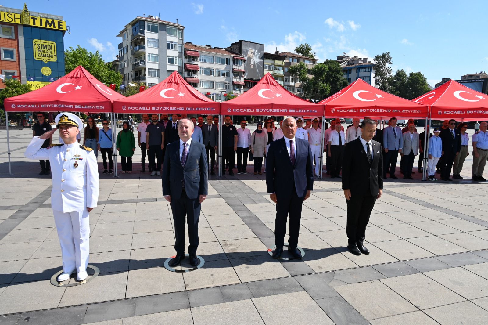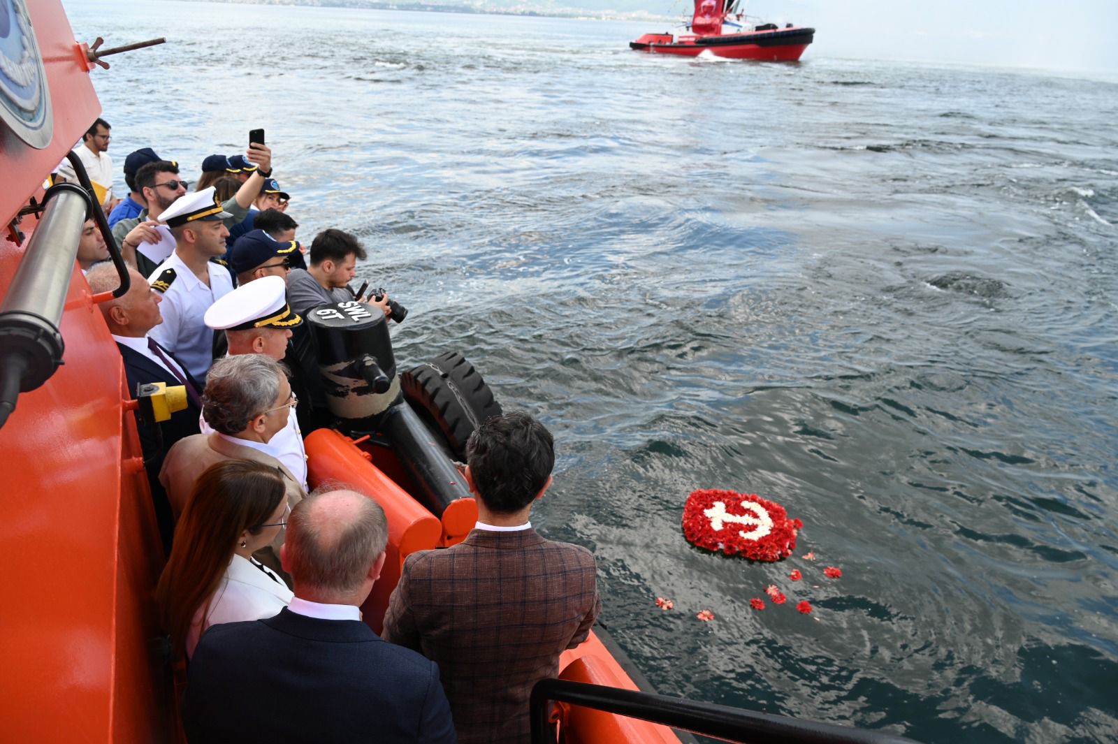 İzmit Kent Meydanı’nda resmi törenin ardından, 1 Mart Vapur İskelesi’nden hareketle kalkan römorkörle, Kocaeli Vali Yardımcısı İsmail Gültekin, Kocaeli Büyükşehir Belediyesi Başkan Vekili Berna Abiş, Kocaeli Bölge Liman Başkanı, İMEAK Deniz Ticaret Odası Kocaeli Şubesi Yönetim ve Meclis Üyeleri ile il protokolün de iştirakleriyle, Ulu Önder Mustafa Kemal Atatürk’ü ve deniz şehitlerini anma adına denize çelenk bırakma töreni düzenlendi.