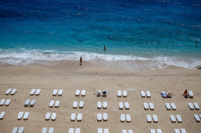 Kaş ilçesi Kalkan Mahallesi'ndeki en çok ziyaretçi alan plajlarından Kaputaş, "kontrollü sosyal hayat" ve "yeni normal" olarak adlandırılan dönemle sessizliğini bozdu.