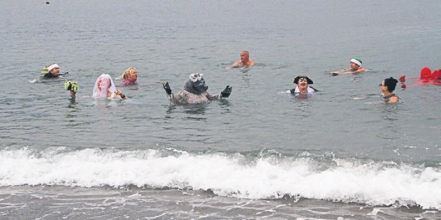Giydikleri renkli kostümlerle sahilde bir araya gelen çoğu İngiliz uyruklu yabancılar, denize koşarak hem yeni yılı kutladılar hem de yardıma muhtaç Türk çocuklarına ve sokak hayvanlarına destek için yüzdü.