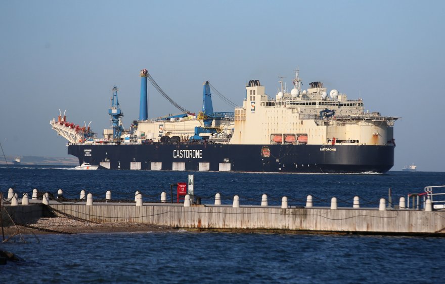 Karadeniz'deki 540 milyar metreküplük doğal gazı taşıyacak boruları derin deniz tabanına yerleştirecek "Castorone" adlı gemi Çanakkale Boğaz'ından geçti.