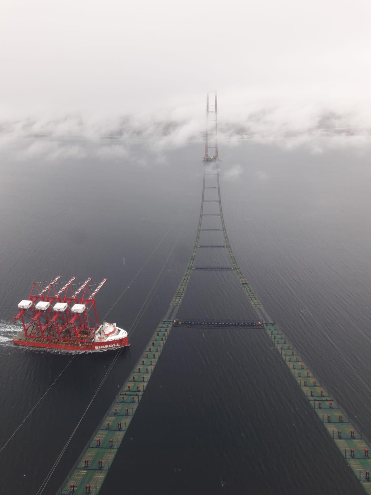 Gemlik Limanı'nda kullanılacak konteyner vinçlerini taşıyan 173 metre boyundaki Bigroll Beaufort Çanakkale Boğazı'ndan geçti.