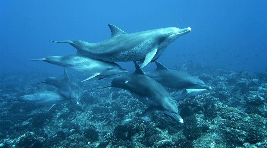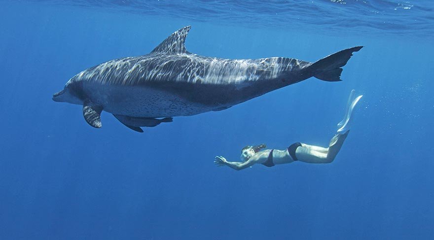 İnsanlara karşı sıcak tavırlarıyla bilinen yunuslar da bu dalışlar esnasında dalgıçlara eşlik edince ortaya hoş görüntüler çıkıyor.