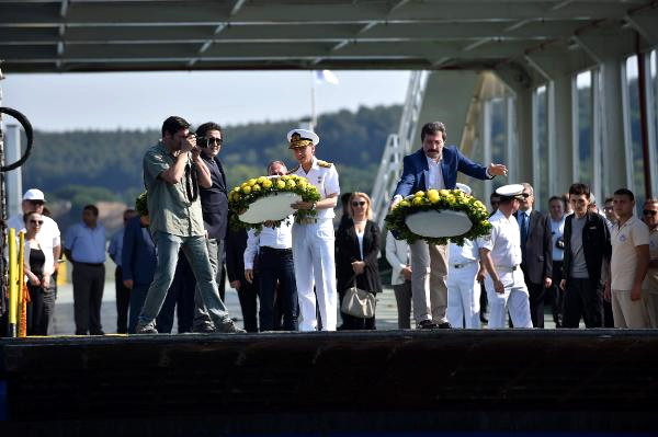 Konuşmanın ardından tören sona erdi. Ardından Çanakkale Boğazı’ndaki törene geçildi. Çanakkale Valisi Orhan Tavlı, Çanakkale Boğaz ve Garnizon Komutan Tuğamiral Mithat Kemal Algül, Çanakkale Belediye Başkan Vekili İbrahim Can Ergun, ‘Alınteri8’ isimli feribota binerek deniz şehitleri adına denize çelenk bıraktı. Çelenk bırakma töreni esnasında Kıyı Emniyeti Genel Müdürlüğüne ait römorkörler de havaya su sıkarak gösteri yaptı.