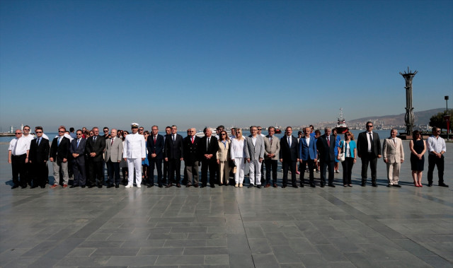 Cumhuriyet Meydanı'ndaki törende İzmir Liman Başkanı Vekili Ahmet Apak, Atatürk Anıtı'na çelenk sundu.