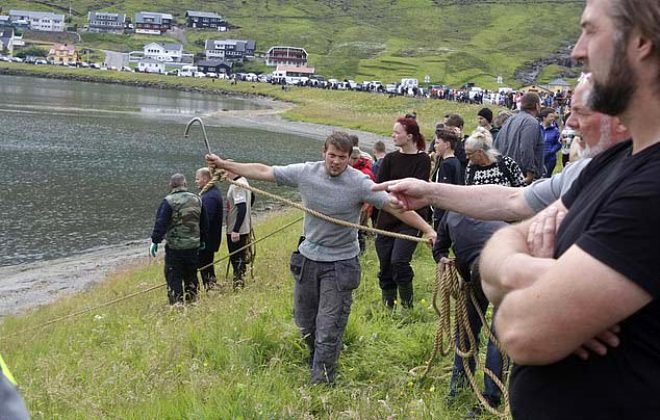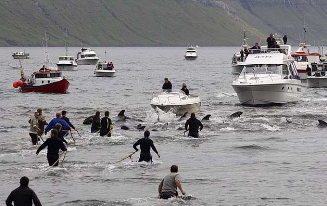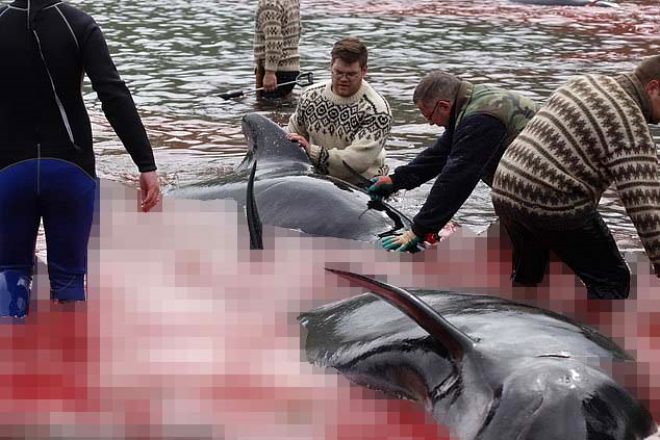 Norveç ve İzlanda arasında bulunan Faroe adalarında, yaklaşık bir asırdır süren gelenek çerçevesinde, onlarca balina katlediliyor.