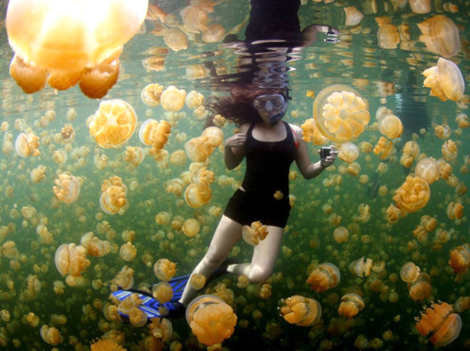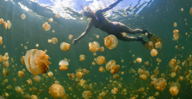 Çoğu kişi korksa da, dünyanın bazı yerlerinde insanlara nefes kesen bir görsel şölen sunan zararsız denizanaları da mevcut. İşte insanların unutulmaz bir yüzme deneyimi yaşamak için gittikleri Palau'daki Denizanası Gölü...